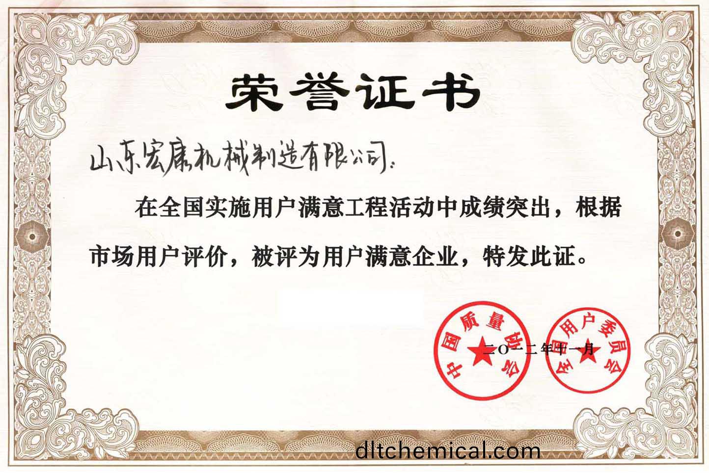 中國質量協會榮譽證書